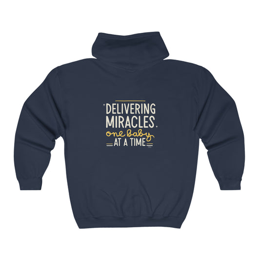 "Delivering Miracles One Baby At a Time" Unisex Full Zip Hooded Sweatshirt