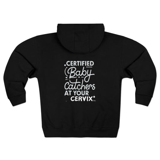 "Certified Baby Catchers At Your Cervix" Unisex Full Zip Hooded Sweatshirt