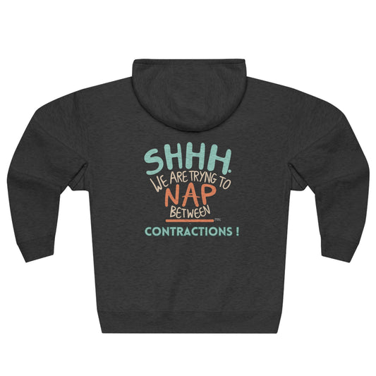 "We Are Trying to Nap Between Contractions" Unisex Full Zip Hooded Sweatshirt